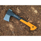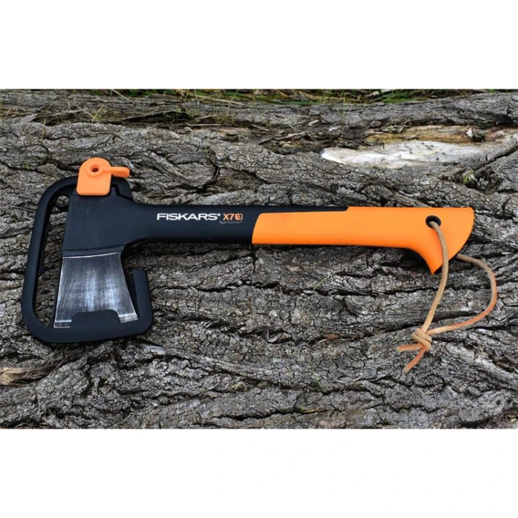تبر فیسکارس مدل Chopping Axe XS X7، گزینه ای ایده آل برای تسریع در زمان هنگام سفرهای آفرودی، کمپینگ، طبیعت گردی و ... می باشد. رفتن به دامان طبیعت و قرار گرفتن در میان جنگل های انبوه بسیار دلپذیر است. هنگام آماده سازی غذا و یا برای فرار از سرمای شب، نیاز به وجود آتش با تکه های چوب است. برای تکه تکه کردن هیزم ها داشتن یک تبر خوب از برند معروف فیسکارس بسیار حائز اهمیت می باشد. با وجود این تبر حتی با یک دست به راحتی می توانید چوب را به هر اندازه ای که بخواهید تقسیم کنید. تیغه این محصول که جزء سری X می باشد برخلاف تیغه های سنتی که سنگین بودند، با توزیع وزن در تمام نقاط، شکل هندسی محدب پیشرفته، لبه فوق العاده تیز و ساختار مقاوم، برای گرفتن کمترین نیرو از شما و صرف زمان کمتر برای بریدن درخت، تقسیم کردن چوب و یا خرد کردن کنده ها، طراحی شده است. دسته ی آن از کامپوزیت پیشرفته ای با فایبرگلاس در یک ماتریس پلیمر ترموست ساخته شده که در بسیاری مواقع از فولاد قوی تر عمل می کند در عین حال بسیار سبک می باشد. کاملا در برابر زنگ زدگی مقاوم بوده و ویژگی بارز آن جذب شوک ناشی از ضربه زدن هنگام خرد کردن هیزم ها و عدم لغزش دست است. انحنایی که در قسمت انتهایی دسته تبر وجود دارد سبب می شود که هنگام ضربه زدن احتمال رد شدن تبر از دستتان به صفر برسد. برای قسمت تیغه غلافی در نظر گرفته شده تا هنگام جابه جایی نگرانی بابت آسیب رساندن تیغه تیز به سایر وسایل نداشته باشیم، همچنین به راحتی می توانید از هر جایی که دوست داشتید آویزان نمایید. این غلاف به راحتی توسط یک قفل باز و بسته می شود. انتهای دسته سوراخی تعبیه شده که با عبور یک بند، برای آویزان کردن و یا در دست گرفتن کاربرد دارد.